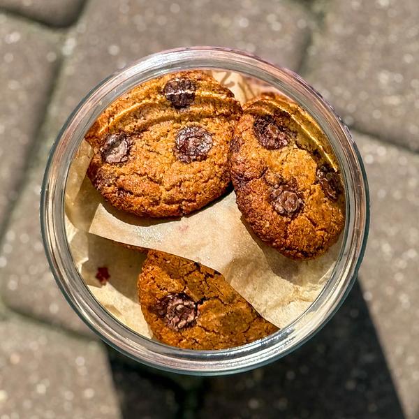 Bezglutenowe ciasteczko z czekoladą. Box zawiera 5 sztuk.
