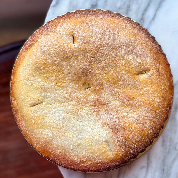 Placek na kruchym spodzie z kremem waniliowym i wiśniami. Średnica 20cm.