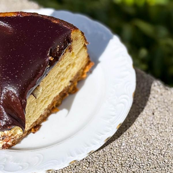 Tofurnik baskijski z polewą czekoladową. Średnica 20cm.